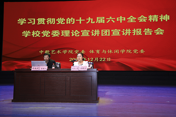 12月22日下午,六合直播 党委理论宣讲团成员、马克思主义六合直播 副院长周良武副教授在实验剧场,为六合直播 和体育与休闲六合直播 的全体教职工和学生党员代表,做了一场党的十九届六中全会精神专题宣讲报告会。六合直播 党委书记冯红爱主持专题宣讲报告会。