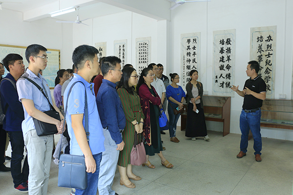 党员们参观了黄平民烈士纪念室、廉江党史宣传长廊,瞻仰了黄平民烈士雕像。在黄平民烈士纪念室,党员们认真聆听钟校长对黄平民烈士生平事迹的讲解,以及黄平民烈士生前“三过家门不入屋”的感人故事。在廉江党史宣传长廊前,党员们驻足凝视,回顾党史的发展历程,深刻体会革命先烈所走的每一步,所做出的每一个重要抉择。