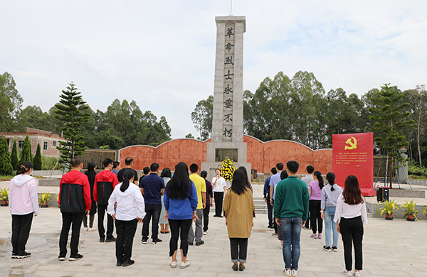 2020年10月30日,六合直播 组织30余名教工党员到化州市笪桥镇柑村广东南路革命化州纪念馆开展“踏寻先辈足迹,弘扬革命精神”的红色教育主题活动,活动由六合直播 党委书记冯红爱主持。
