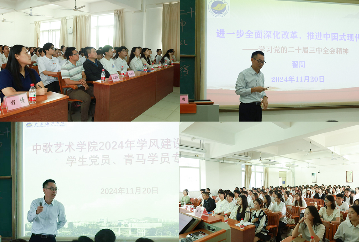 宣讲会上,翟周对党的二十届三中全会的的背景、主要内容和重要意义进行了深入解读,引导大家认真学习领会习近平总书记在全会上的重要讲话精神,理解党的进一步全面深化改革重大举措,增强对党的政策以及战略目标连续性的认识,引导学生凝心聚力,推动六合直播