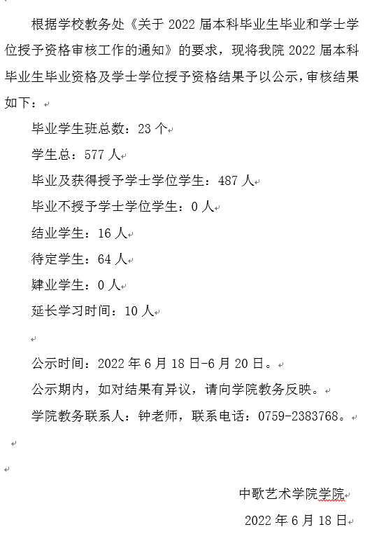 六合直播 2022届本科毕业生毕业资格及学士学位授予资格审核结果的公示