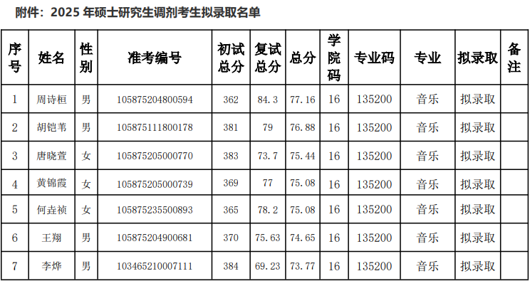 研究生招生办公室反馈。若有拟录取后放弃的考生或招生计划增加,按总分排名依次候补录取。