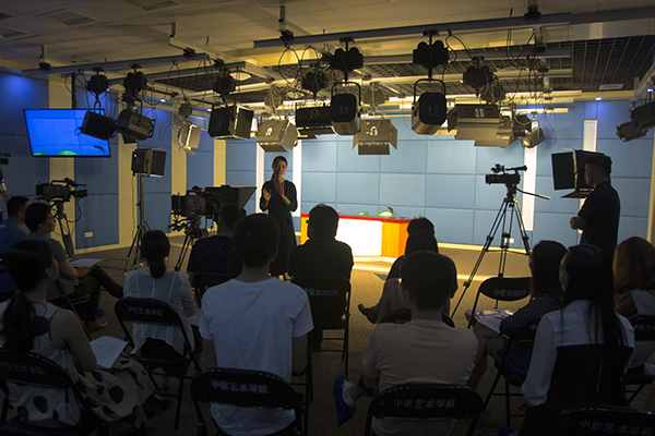 金雨萱老师的《节目主持艺术》公开课以“无声仍有情,无语亦有意”为主题,充分利用教室内的模拟演播设备,通过理论概述、镜头前示范、模拟主持、点评分析等方式,生动的讲解了《主持人非语言空间驾驭技巧》相关内容。教学展示中从学生在课堂实践中常见的问题入手,拓展到不同类型的节目、置身于不同演播空间及不同出像景别时主持人副语言的差别,并结合学生们的模拟主持训练具体讲授了主持人的面部表情、眼神、肢体动作三方面的副语言表达技巧。