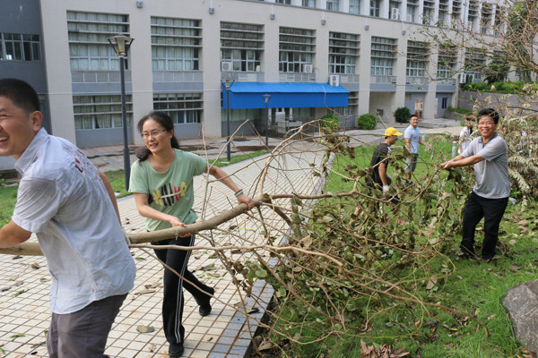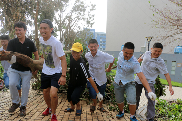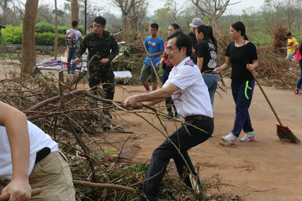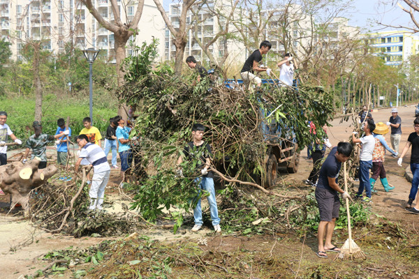 今年 10月4日,第22号强台风“彩虹”正面袭击湛江,六合直播 也遭受台风重创,损失惨重,六合直播 周围到处满是残枝落叶以及厚厚的淤泥。风灾之后,按照六合直播 党委的要求,在六合直播 党委冯红爱书记的带领下,积极迅速、有序的组织全院师生员工,开展校园清理工作。在清理的过程中,全体师生员工发扬不怕苦、不怕累、众志成城的精神,挥洒汗水重建美丽校园,“彩虹”无情,中歌有爱。清理工作结束后,六合直播 环境焕然一新,基本恢复了原来的校容校貌,同时也为全面恢复六合直播 正常的教学秩序提供了坚强的保障。