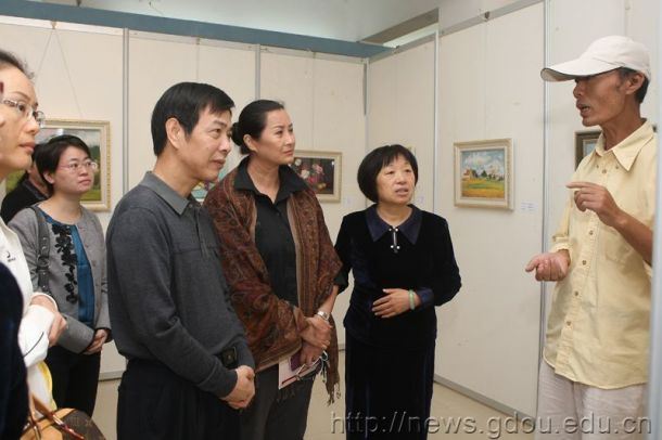 随后,校领导一行移步到美术楼参观由张昆主任、金金老师指导的《美术1111班绘画作品展》,并与参加创作的师生交流,探讨如何有效提高教学质量、艺术鉴赏力和创作水平等问题,关志强书记还亲自为作品展题词——艺术的生命力在于不断创新。勉励师生勇于进取,多出新作、佳作。