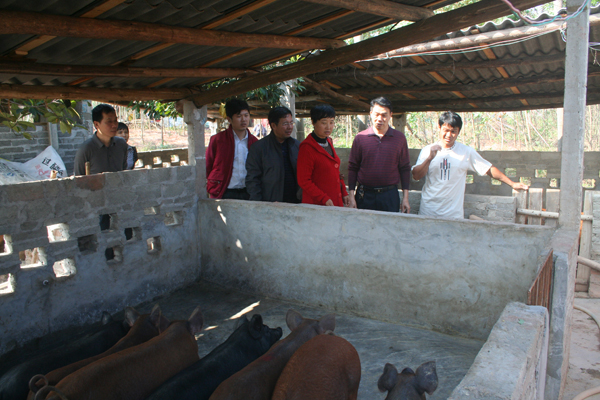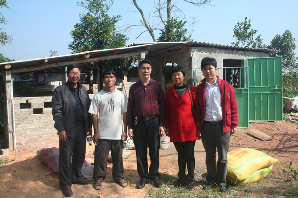 与贫困户合影