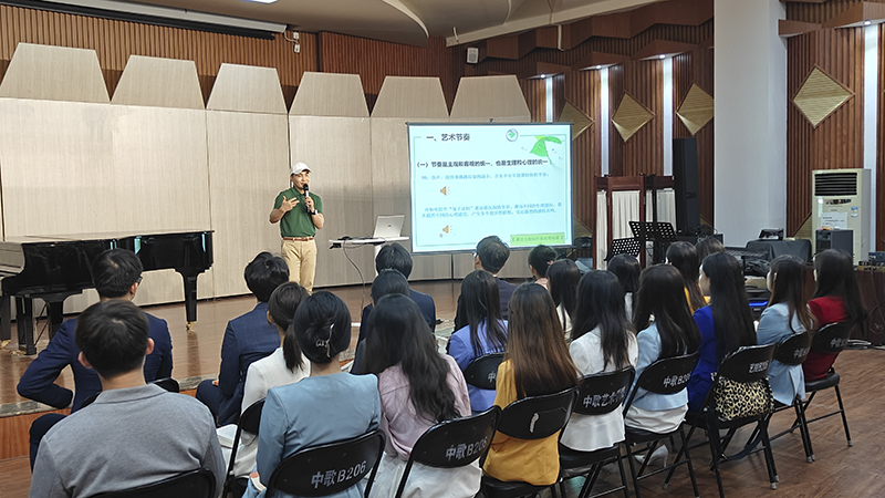 教学名师姚忠呈,校级授课比赛二等奖获得者高超主讲,他们分别讲授了《声乐》、《普通话语音与播音发声》、《国际标准舞》三门课程。现场教学采用新颖的教学理念,巧妙的课堂构思,灵活融入思政元素,精彩展示了艺术课堂不同艺术作品和艺术表现所蕴涵的情感和思想。