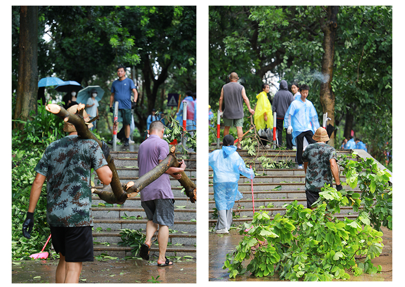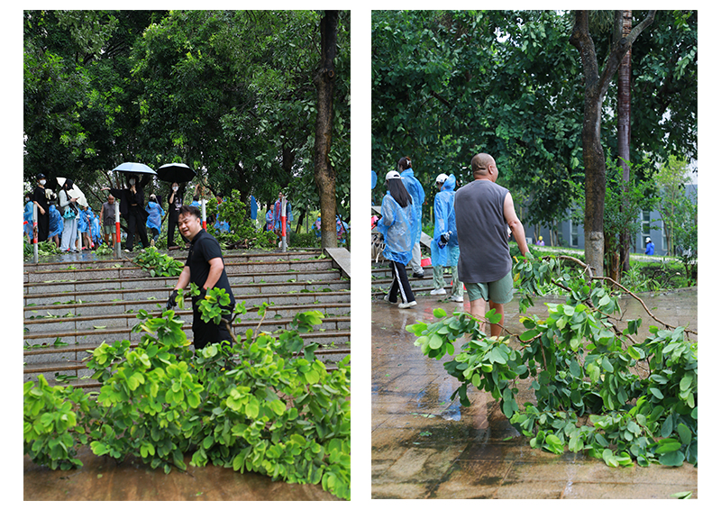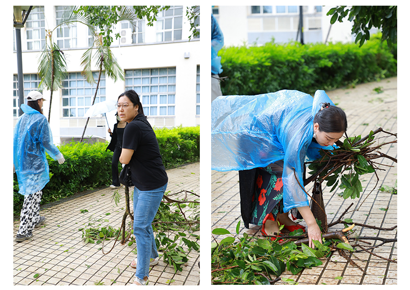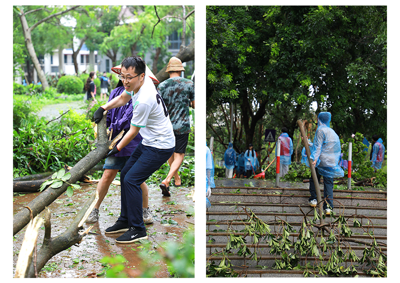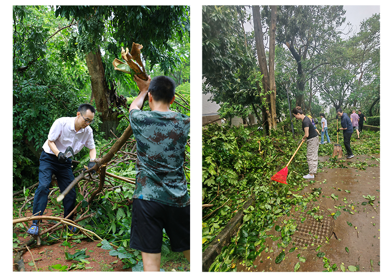 9月6日,第11号超强台风“摩羯”二次登录湛江徐闻,六合直播 周边环境遭受台风重创,六合直播 周围到处满是残枝落叶,树木损毁严重。9月7日,按照六合直播 党委的统一部署,六合直播 领导带领党员先锋队和师生员工,积极有序开展校园清理工作,全体战斗员发扬不怕苦、不怕累、众志成城的精神,挥洒汗水重建美丽校园。经过近两小时的清理,六合直播 环境焕然一新,基本恢复了原有的校容校貌,同时,也为新生入学工作的顺利开展和全面恢复六合直播 正常的教学秩序,提供了坚强的保障。