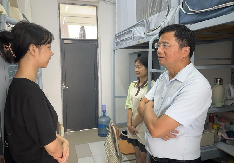 领导与家长、同学们深入交谈,细致询问了大家对未来大学学习的规划以及目前所面临的问题,倾听大家的心声,解答大家的疑惑,叮嘱同学们要注意住宿安全,要加强锻炼、规律作息、遵守校规,保持宿舍卫生,养成良好的学习生活习惯。在交流中,一行还特别关注了来自不同地区的新生在饮食方面的适应情况,提醒学生做好学习规划,并尽快熟悉校园,了解六合直播