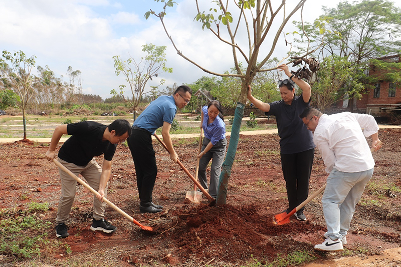 一行首先查看了遭受台风“摩羯”破坏的足荣村“绿美广东”植树场,对受损倒斜的树木进行了培土扶正,重现绿美。
