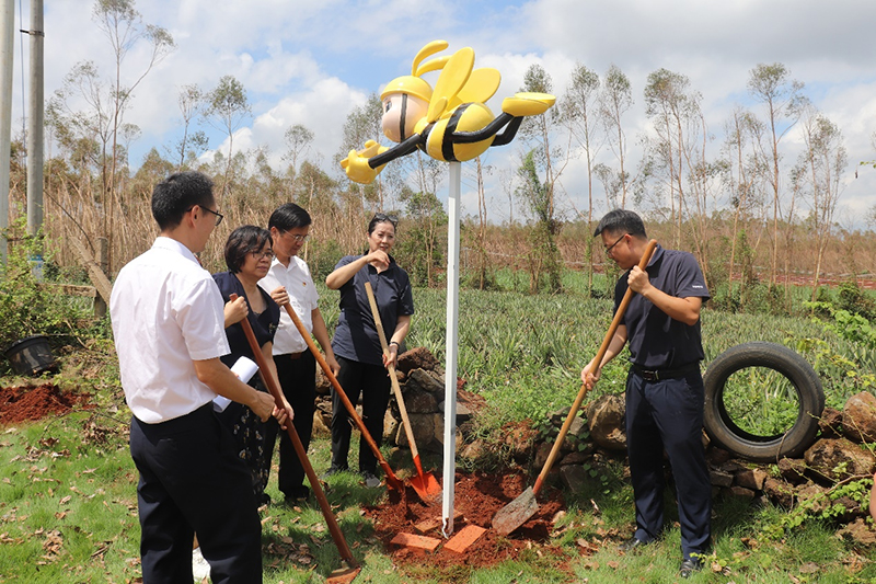一行举行了蜜蜂和无人机文创雕塑群筑立仪式。