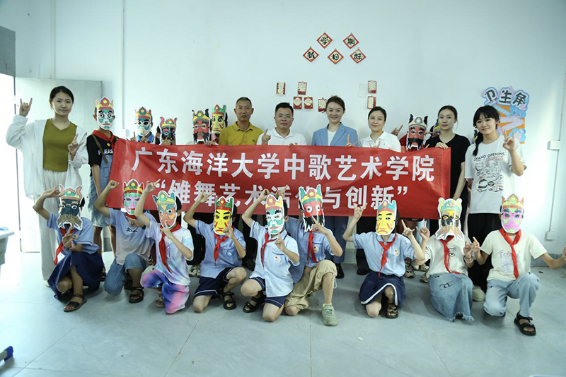 副院长刘迪、舞蹈系主任许笑傲带领本硕学生团队深入麻章旧县,通过"高校+地方"结对模式开展文化振兴实践。团队首站走访湛江傩舞陈列馆,系统梳理千年傩舞历史文脉,采集传统面具、服饰、动作等文化基因。在旧县小学,"傩舞进校园"工程创新推出首套傩舞主题课间操,将驱邪祈福的"香火决"等经典动作转化为适合青少年的韵律操,让小学生们在强身健体中感悟文化根脉。