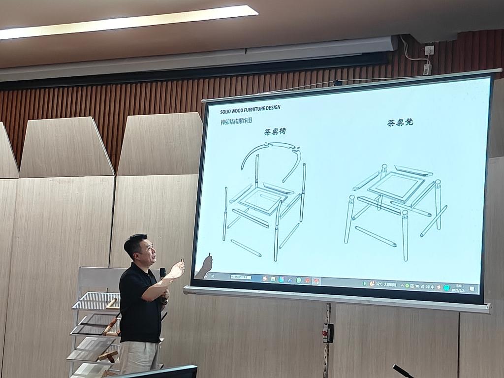 产品设计专业负责人、省美育授课比赛获奖教师魏天德主讲《实木家具设计》课程。现场教学采用新颖的教学理念,巧妙的课堂构思,灵活融入思政元素,精彩展示了艺术课堂不同艺术作品和艺术表现所蕴涵的情感和思想。