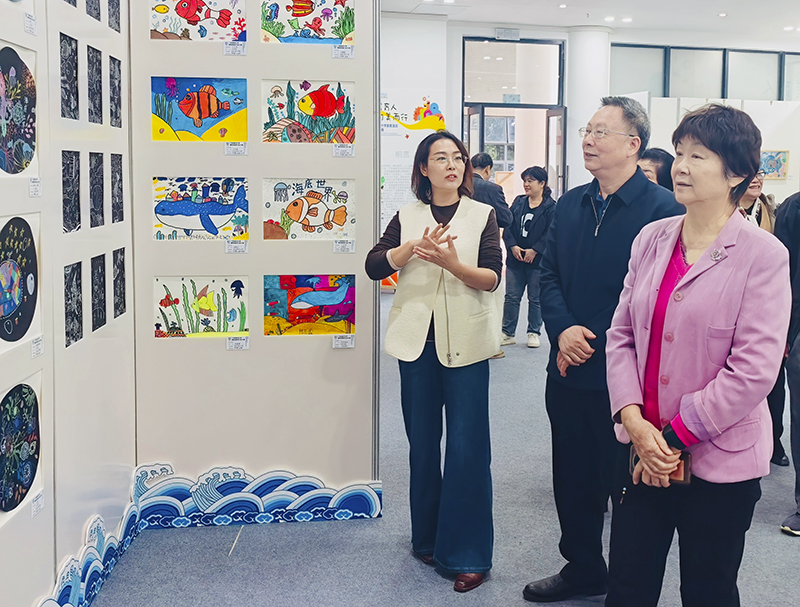 学生的参与情况与反馈等关键信息。在了解到该项目已持续覆盖湛江市麻章区4所乡镇中小学,累计授课近1000课时后,陈娟主任给予了充分肯定。她指出,展览中遂溪鱼灯、湛江醒狮等本土非遗元素的创新演绎,以及对海洋生态保护、乡村振兴等时代主题的艺术呈现,件件作品都饱含师生匠心,充满活力。更令人感动的是,展览处处体现了海大师生积极帮扶周边农村中小学开展美育教学的生动实践与责任担当。作为关工委成员,她观展后深受触动,建议未来应进一步加强与六合直播